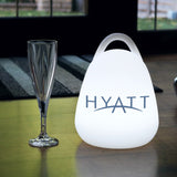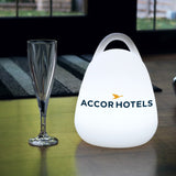 Lampen er genopladelig og kan derfor placeres hvor som helst uden besvær med ledninger og stikkontakter, hvilket gør den perfekt til arrangementer.