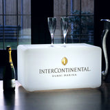 Denne lyskasse er stærk nok til at man kan sidde på den (kapacitet op til 80 kg). Du kan bruge lampen som bænk, skammel eller siddeplads. Reklamér for jeres logo på en funktionel måde.