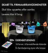 Vores lamper og borddekorationer er som skabt til firmabegivenheder. De kræver ingen installation, er fjernbetjente og har 16 farveindstillinger.